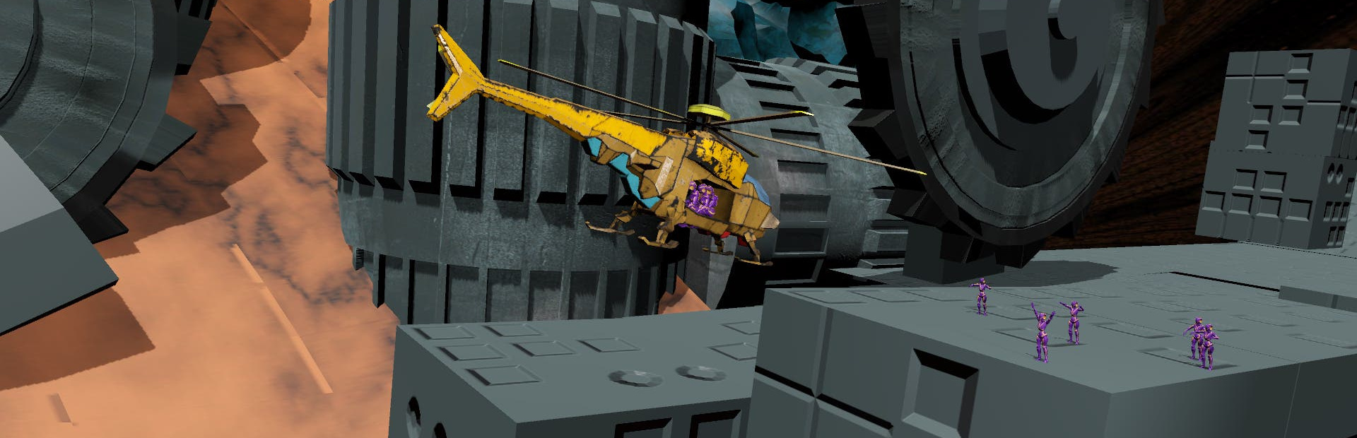 As a heli-pilot in an abstract deep-space mining colony, you are thrust into the aftermath of a mysterious catastrophe. With the facility in ruins and the cyber-miners offline, you must first clear the field and rescue the workforce. These are no ordinary survivors—they are specialized cyber-workers with the unique ability to hack into the Supercomputer’s core. Secondary explosions expected in 407 minutes. Move it!
